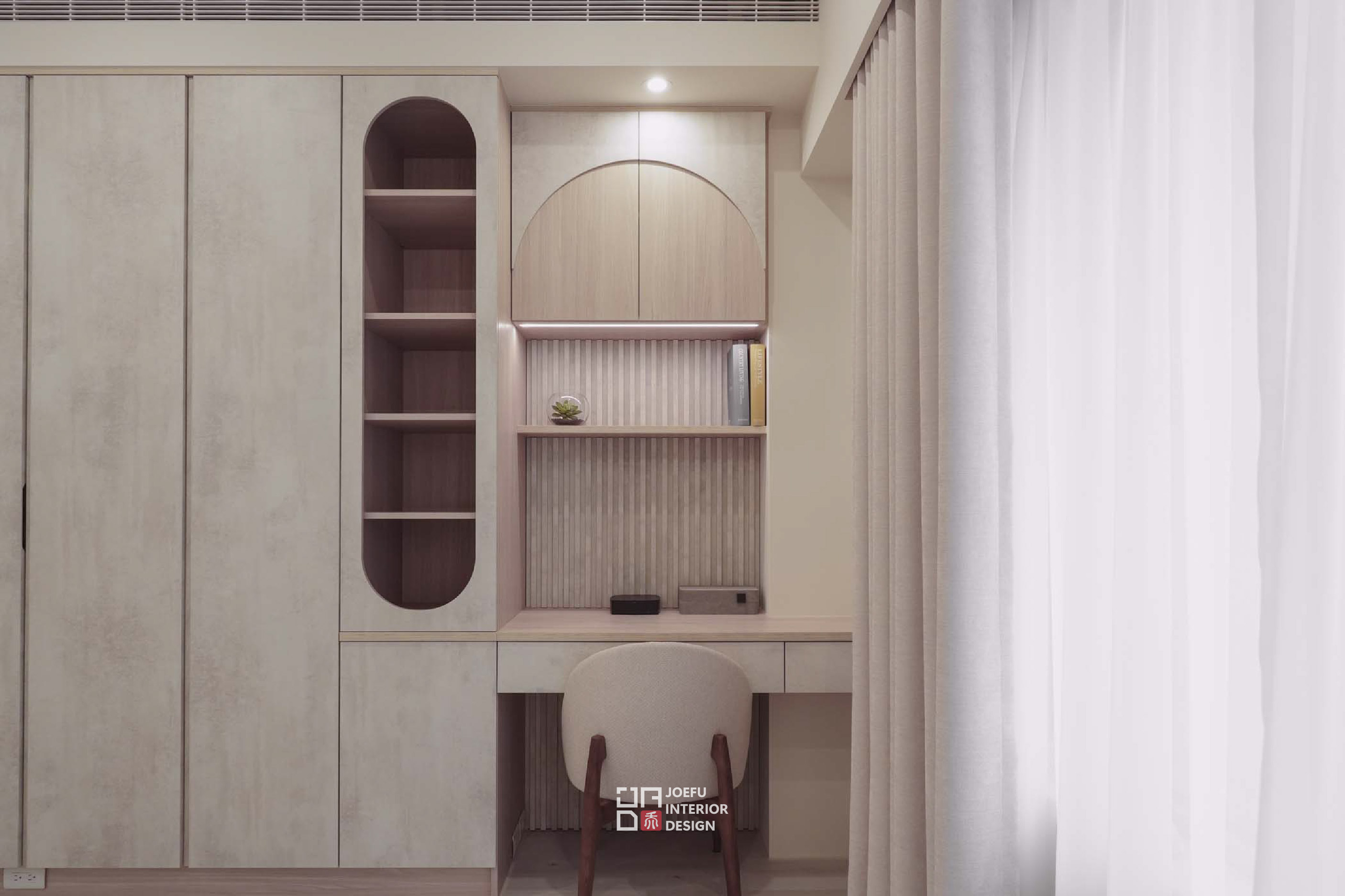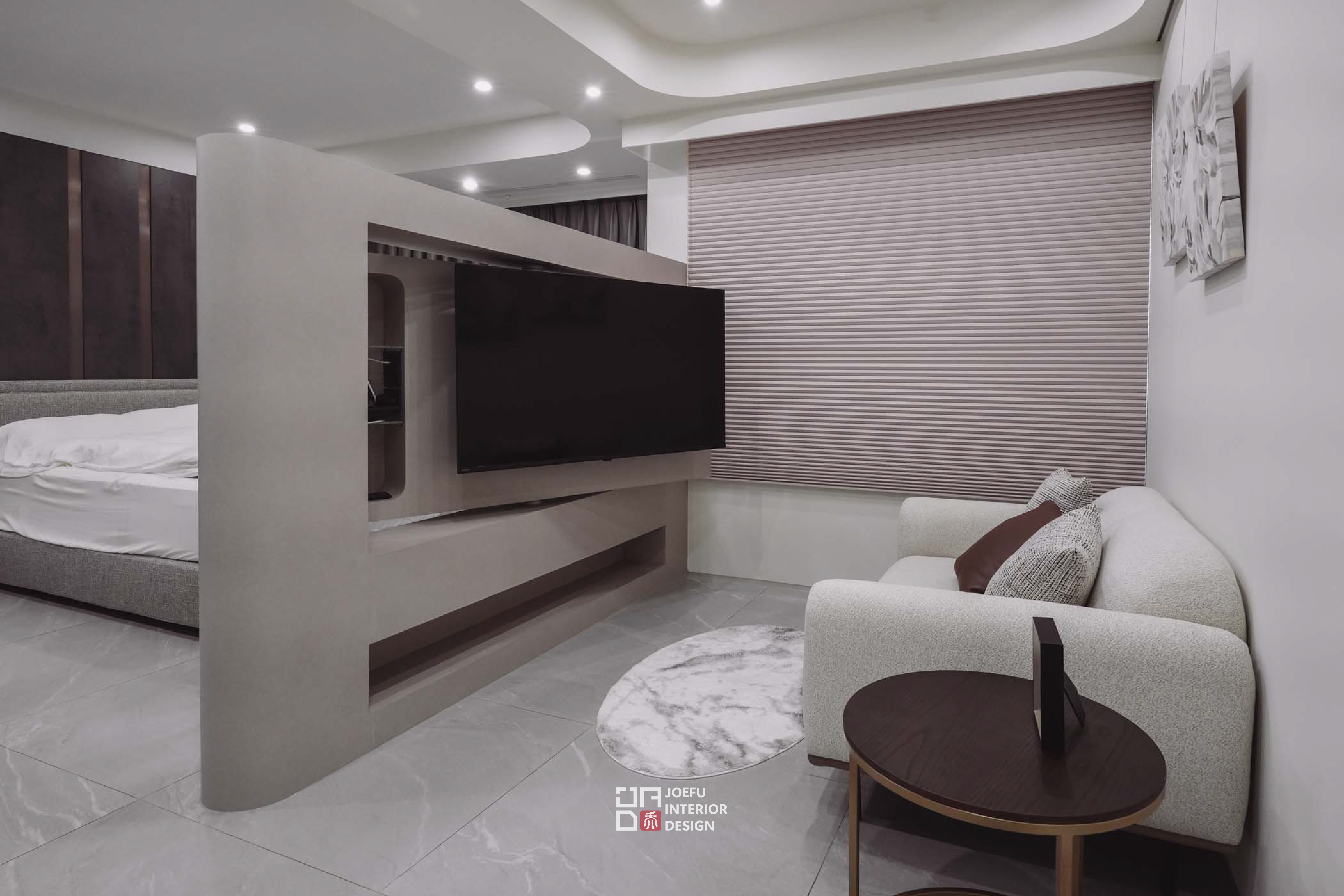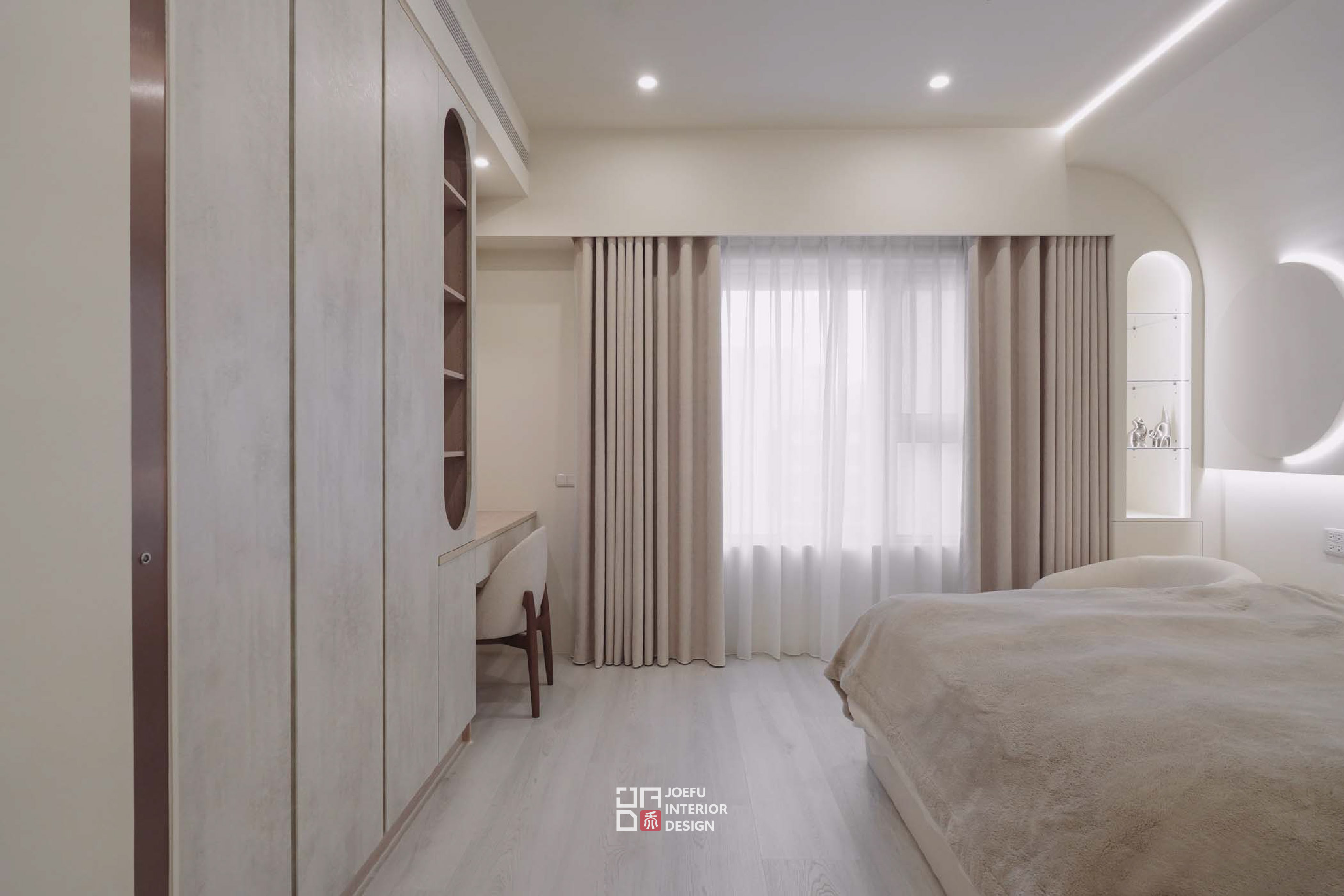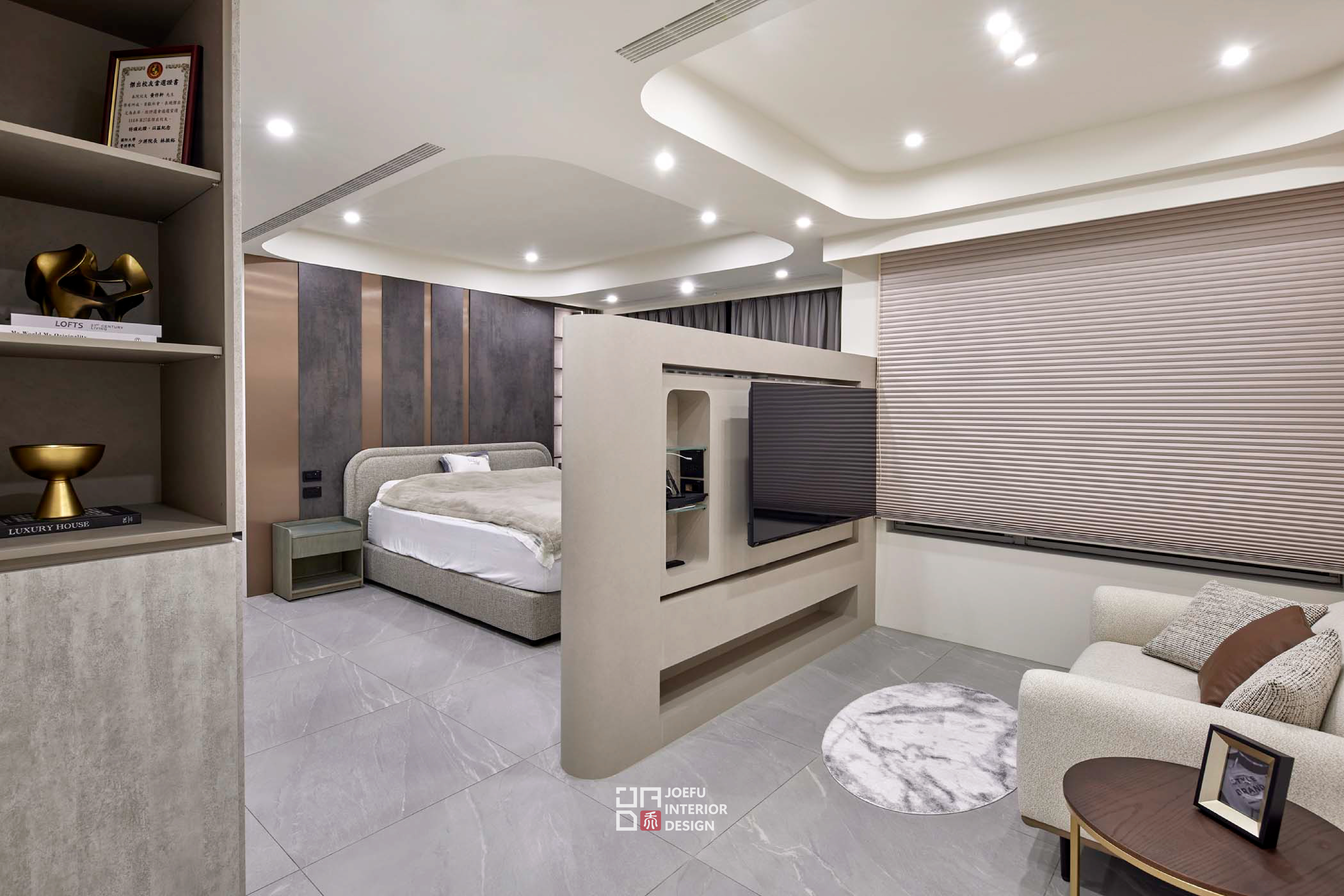 踏進玄關,像是看見一隻孔雀展翅,拖曳著斑斕尾羽悄然開場。弧形玻璃端景穿透光線,水晶吸頂燈將反射光點灑落在帶有藍、金、灰斑紋的大理石地坪上,如夢似幻卻穩定節奏。金色的把手如同孔雀翦翦長睫,細節處的光,襯托出整體空間華而不俗的第一印象
